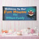 Acoja con satisfacción sus vecinos, familia y amigos a su propia casa de diversión de Halloween. Featured está una mueca, un mal, locos, y payaso asustadizo. La muestra de la bandera de Halloween es perfecta para exhibir en su yarda o su fiesta o danza de Halloween. Modifique esta bandera para requisitos particulares con su propio mensaje de texto.