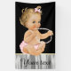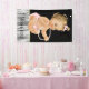 Pancarta de la ducha de bebé chica con una adorable niña que usa pantalones de rufa rosados y perlas en un hermoso fondo negro y dorado. Este banner de ducha de bebé rosa y negro se personaliza fácilmente con el texto en el estilo de letra, color y texto de su elección. También puede cambiar el color de fondo.