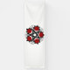 Pentagrama negro con estampado, decorado con rosas rojas florecientes con hojas sobre fondo blanco. Estilo tatuaje.