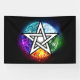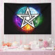 Pentagrama luminoso de dibujo artístico con cinco elementos mágicos, agua, tierra, fuego, astral, aire sobre fondo negro. Pentagrama de Wiccan. Wicca