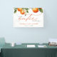 La pancarta de bienvenida Little Cutie Naranja Clementine Baby Shower cuenta con un hermoso ramo de naranjas y flores de acuarela, además de un elegante tipo de caligrafía.