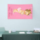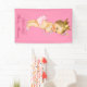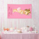 Pequeña bandera personalizada de la fiesta de bienvenida al bebé de la princesa del vintage rubio rosado elegante. Un ilustracion hermoso del vintage de una niña rubia linda y adorable con la corona elegante de la princesa del oro, pendientes y collar de una perla, un pañal rosado bonito y un arco rosado en su pelo en un fondo rosado elegante con el texto adaptable de las rosas fuertes en una fuente adornada de lujo. Si usted necesita alguna ayuda que modifica su producto para requisitos particulares me entra en contacto con por favor a través de mi tienda y me placeré ayudar. Tengo productos a juego en mi tienda.