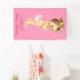 Pequeña bandera personalizada de la fiesta de bienvenida al bebé de la princesa del vintage trigueno rosado elegante. Un ilustracion hermoso del vintage de una niña triguena linda y adorable con la corona elegante de la princesa del oro, pendientes y collar de una perla, un pañal rosado bonito y un arco rosado en su pelo en un fondo rosado elegante con el texto adaptable de las rosas fuertes en una fuente adornada de lujo. Si usted necesita alguna ayuda que modifica su producto para requisitos particulares me entra en contacto con por favor a través de mi tienda y me placeré ayudar. Tengo productos a juego en mi tienda.