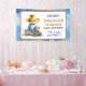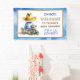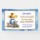 ¡Oh, chico, es un Cowboy de Lil'! Pancarta de la ducha azul y marrón con un niño pequeño en un gorra de vaquero sentado con un oso de peluche, un tren y una niña. Ducha de bebé de un niño rústico de temática rural y occidental.