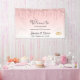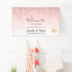 Banner boda sencillo y moderno. El fondo tiene una imagen de goteos brillantes de purpurina rosa a lo largo de la parte superior. El resto del fondo es un delicado degradado de color rosa pastel. 2 bandas bodas de oro frente al texto personalizado. Una elegante línea divisoria separa parte del texto.