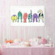 Una hilera de perros coloridos mostrando sus lindos traseros.