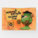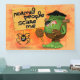 Funny personaje de caricatura Frankenstein sostiene un panel de madera Comic con el texto / Comic "Gente normal me asusta", y con mascota araña colgando en el panel. Arte Gráfico vectorial original Derechos de autor BluedarkArt.