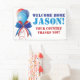 Globos patrióticos, blancos, blancos y azules y cintas dan la bienvenida a la bandera militar de casa. Perfecto para darle la bienvenida a su soldado de vuelta a casa después de un viaje de servicio. Gran pancarta de bienvenida para tu ser querido.