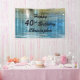 Una qué bandera única para una 40.a o 45.a fiesta de cumpleaños. El fondo abstracto es nuestra fotografía original de una reflexión en un lago. Usted puede personalizar tres líneas de texto azul marino de su elegir - conveniente para cualquier edad. Seleccione el material interior o al aire libre. Todos los derechos reservados © Alan 2016 y Marcia Socolik.