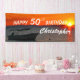 Una qué bandera única para una 50.a fiesta de cumpleaños. Un fondo de un barco de pesca en la puesta del sol, y texto blanco de su elegir - conveniente para cualquier edad. Seleccione el material interior o al aire libre. Todos los derechos reservados © Alan 2016 y Marcia Socolik.