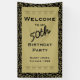 Personalice: Recepción a mi 50.a fiesta de cumpleaños. Una bandera grande del oro con el texto negro y las plantillas para hacerla fácil para que usted cambie a sus propias palabras. Usted puede personalizar todo el texto usando las plantillas suministradas. La muestra se arregla con las estrellas del oro y las líneas del hachís. Un gran tema de la fiesta de cumpleaños del negro y del oro.