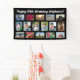 Personalizado crea tu propio cartel de cumpleaños de fotos personalizado para cualquier edad! Añade dieciséis de tus propias fotos digitales, horizontales y verticales. Sube tus propias fotos desde cualquier dispositivo para crear este llamativo cartel de afiche de fotos a todo color. Moderno fondo negro sólido con tu línea de mensajes especial de nombre personalizado de texto para añadir un toque personal! Diseñar y crear su propio banner de decoración para fiestas de cumpleaños.