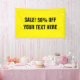 Personalizado 50 POR CIENTO de carteles de venta. Diseñe su propio banner de vinilo con un 50% de descuento o firma para imprimir. Haga sus propios banners para el personalizado pvc en el interior o al aire libre. Añade tu propio texto impreso y color de fondo. plantilla de Rótulo con tipografía moderna personalizable. Ideal para negocios, apertura de tiendas/tiendas, ofertas especiales de vacaciones, publicidad, venta de yardas o garajes, recinto, fiesta, eventos deportivos, taquilla, viernes negro, ocasiones promocionales, etc. Señalización personalizada con letras grandes / letras grandes. Disponible en diferentes tamaños y formas para pared, balcón, valla de jardín, edificio de oficinas, techo, etc. Con o sin agujeros para colgarlo. Cambiar la cantidad por el precio más barato. Impresión digital, entrega rápida. Colores amarillo y negro o personalizado.
