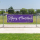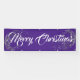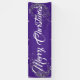 Este banner de Holiday se muestra en el estilo exterior con grommets. Seleccione entre interior o exterior, con o sin mangas. Mostrado en morado con el guión lujoso "Feliz Navidad" blanco con dos giros de estrellas de aspecto plateado en cada extremo. Personalizar o compra según el diseño.