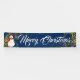 Esta pancarta de la Fiesta del Navidad se muestra en el estilo al aire libre con grommets. Seleccione entre interior o exterior, con o sin mangas. Mostrado en azul marino con "Feliz Navidad" blanco con Snowman y guión lujoso con dos estrellas de aspecto dorado en cada extremo. Personalizar o compra según el diseño.