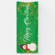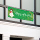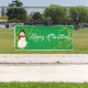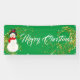 Esta pancarta de la Fiesta del Navidad se muestra en el estilo al aire libre con grommets. Seleccione entre interior o exterior, con o sin mangas. Mostrado en verde con "Feliz Navidad" blanco con Snowman y sofisticado guión con dos estrellas de aspecto dorado en cada extremo. Personalizar o compra según el diseño.