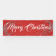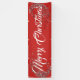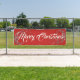 Este banner de Holiday se muestra en el estilo exterior con grommets. Seleccione entre interior o exterior, con o sin mangas. Mostrado en Rojo con el guión elegante de "Feliz Navidad" blanco con dos giros de estrellas de aspecto plateado en cada extremo. Personalizar o compra según el diseño.