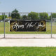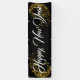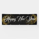 Este banner de Holiday se muestra en el estilo exterior con grommets. Seleccione entre interior o exterior, con o sin mangas. Mostrado en negro con el guión lujoso de "Feliz Año Nuevo" blanco con dos estrellas de aspecto dorado en cada extremo. Personalizar o compra según el diseño.