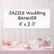 Banner personalizado de 6' x 2.5', impresión de color vibrante de borde a borde, los bordes se cierran y luego se soldan térmicamente para un acabado limpio y limpio. Disponible en interiores, exteriores y exteriores con mangueras metalizado. 4 opciones de tamaño. Invitaciones y elementos esenciales de la boda personalizada de Zazzle Personalizado.