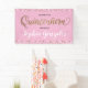 Con una impresión dorada, diseño de confeti rosa y blanco con un elegante tipo de letra de guión, este banner de cumpleaños de quinceañera es elegante y de moda. Personaliza con el nombre del celebrante de cumpleaños, la fecha del evento y el saludo de bienvenida.