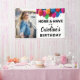 Que los que manejan sepan que hay un chica/niño de cumpleaños viviendo en la casa. Esta impresionante pancarta de cumpleaños incluye "HONK & WAVE" en negrita, la foto de su chica/niño de cumpleaños, 4 líneas de texto personalizado y un borde de globos festivos. Divertido y colorido, pero simple y clásico, un banner de cumpleaños que hace la declaración perfecta para celebrar a tu chico/chica especial.