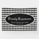La pancarta Versatile presenta un patrón de arlequín en blanco y negro con oval de texto central, perfecto para todo tipo de eventos, desde fiestas de té victorianos hasta casetas de tiendas de antigüedades.