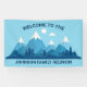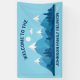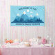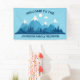 Banner de fiesta de montaña azul personalizado para su alojamiento de esquí o celebración de montaña de Colorado para personas que viajan para esquiar y vacaciones de invierno. Este diseño fresco y personalizado cuenta con un bonito dibujo de montañas nevadas y un paisaje azul. Un gran paisaje natural para una familia que ama al aire libre por su expedición natural. Ideal para promocionar su restaurante o su tienda de viajes.