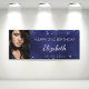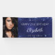 Celebrar el cumpleaños número 21 (o cualquier edad) de un chica/mujer. Un fondo azul oscuro. El color azul es desigual. Decorada con polvo falso purpurina. Personalice y agregue su propia foto del chica de cumpleaños. Usar una foto de tamaño vertical/vertical. El texto: El nombre en gris con una escritura de estilo con letras a mano moderna. Personalice y agregue un nombre, edad 21 y fecha. Se puede utilizar como banner de bienvenida o como decoración de paredes fiestas.