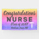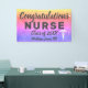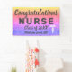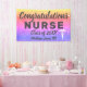 Muestre el cartel de una enfermera de diseño para su fiesta. Ambos lados de la pancarta están diseñados con un falso fondo purpurina arcoiris y un símbolo blanco caduceus. El texto es "enfermera de felicitación" y el año de clase personalizado seguido por el nombre completo de la enfermera es en una mezcla de escritura blanca cepillado y letras en bloque. Haga clic en la opción "personalizar plantilla" e introduzca el nombre y el año.