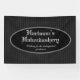 La pancarta versátil presenta un fondo de rayas grises oscuras con un texto ovalado del personalizado central y es masculina y elegante a la vez. Perfecto para una variedad de fiestas, eventos, tiendas y más de Steampunk, Victorian, vintage y gótico.