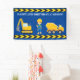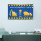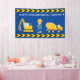 Arte de tela de personalizado de construcción de excavadoras de Guay para un niño que ama los vehículos de construcción amarillos en negro y amarillo. Decoración fiesta de un vehículo azul divertido para un niño al que le encantan los autos y camiones. Personalizar con el nombre de su hijo bajo la cinta de precaución negra y amarilla con un mensaje personalizado de feliz cumpleaños que incluye su nombre y edad.