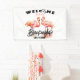 Ofrece una cálida bienvenida en su próxima reunión familiar con un banner de formato horizontal con flamencos en la parte inferior sobre un fondo blanco. Personalice todo el texto, elimine el texto o edite utilizando la herramienta de diseño para seleccionar el estilo de fuente, el tamaño y el color que prefiera. Al desproteger, puede seleccionar los elementos que le ayudarán a colgar o montar su banner para que esté listo para mostrarse después de llegar al correo.