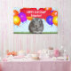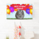 El texto de la plantilla de esta fotografía de conejillo de indias gris y globos de arte digital con diseño de pancartas rojas puede cambiarse para cualquier ocasión. Personalice el mensaje en el campo de plantilla.