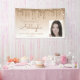 Bienvenido a los huéspedes con esta moda, glamurosa pancarta de fotos de la fiesta de 18 años, con un brillante borde de goteo de purpurina dorado y un fondo sombrío de oro. Reemplace fácilmente la imagen de muestra con una foto del invitado de honor. Personalízalo con su nombre en escritura a mano de color marrón claro, con el cumpleaños y la fecha a continuación en letra sans serif marrón claro.