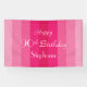 Qué banner único para una fiesta de cumpleaños número 90. Un fondo de rayas rosadas, y Tres líneas de texto rosa pálido de su elección - adecuado para cualquier nombre / edad. Seleccione Material interior o exterior. Todos los derechos reservados © 2016 Alan & Marcia Socolik.