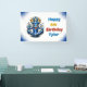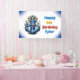Personalized birthday party banner with a cute nautical pop art oceanic theme with a cute blue, red and yellow anchor. Add child's name and age in the personalize area.