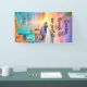 Fun cruise door banner featuring a tropical sunset and cartoon couple caricature. Customize with your own faces and names—perfect for personalizing your stateroom and making it easy to spot! We recommend hanging these with the velcro type of command strips or adding grommets and using magnetic hooks. Please note: Not all ships allow banners on their doors. Please check with your travel agent, the cruise line, or via forums.
