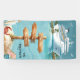 A fun tropical cruise scene featuring a large ship, sandy beach, playful wooden port signs, and a space to personalize your family name, ship name, port stops, and sailing dates—perfect for cruise lovers. This cruise door banner makes a great souvenir to remember your special trip.