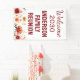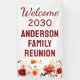 Set the perfect tone for your family reunion with this stunning custom welcome banner! Designed for gatherings big and small, this elegant vertical banner features a clean white background with warm, rustic watercolor florals in shades of red, orange, and gold blooming along the bottom edge. The focal point is the bold, classic typography in deep burgundy, spelling out your personalized welcome message.