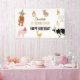 A hand drawn cute petting zoo party animals design featuring illustrations of a goat, goose, hamster, llama, pig, baby chick, cow and rabbit . A beautiful petting zoo themed design ideal for kids petting zoo themed birthday parties. Customize this cute petting zoo animals birthday party banner and make it your own!