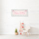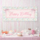 This Pink and Blue Granmillennial Floral birthday banner features a pink cabbage roses in the background. Text says "Happy Birthday."
