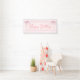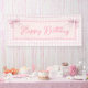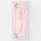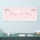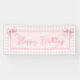 This Pink and White gingham birthday banner features pink bows in the background. Text says "Happy Birthday."