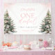 Pink Bow Pine Trees Winter Onederland 1st Birthday Banner