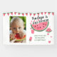 Una verde rosa dulce en un símbolo de melón chica de primer cumpleaños con productos de sandía. Reemplace la foto de marcador de posición con su propia foto de bebé. ¡Un gran tema de cumpleaños para el verano! La parte de atrás de la invitación es una sandía sangrando fuera de la página, verde rosa y semillas. Consulte la colección completa de elementos coincidentes para este diseño en: https://www.zazzle.com/collections/one_in_a_melon_baby_birthday_party-119209815727560938