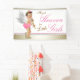 Ángel de princesa rosa y dorada pancarta de ducha de bebé con adorable chica de ángel de morena de pelo oscuro usando corona de oro de bonito, pantalones de rufa rosados, cuerda de perlas y zapatos de tacón altos de oro en un hermoso fondo de perlas. Puede cambiar el texto del evento y también puede agregar su propio color de fondo. Este es un diseño impreso sin perlas reales, etc.