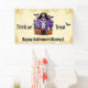 Navegue por la espeluznante diversión con este audaz y festivo cartel de Halloween pirata! Con un esqueleto sonriente pirata, lámparas jack-o’, murciélagos y un fondo al estilo de un mapa del tesoro, este cartel dice "¡Trick o Treat, Happy Halloween Mateys!" con letras audaces y con temática pirata. El diseño aparece con púrpura espeluznante, negros profundos y tonos pergaminos, perfecto para crear una atormentada atmósfera de alta mar en tu celebración de Halloween. Con una capacidad de 3' x 5', con varias opciones de tamaño disponibles, este banner le aporta un atractivo añadido a la entrada, el porche, el fondo de la cabina de fotos, el aula o la pantalla de maletero o trenzado. El texto editable le permite personalizarlo con un nombre de familia, un título fiesta o un mensaje espeluznante personalizado. Coordinarlo con decoraciones, favores y software de piezas de la colección Pirate Halloween completa para un aspecto terriblemente divertido y cohesionado. Edite texto desde la página del producto o para cambiar el estilo o el color del texto, utilice la herramienta de diseño.