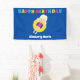 Impresionantes niños fiesta de piscina Feliz cumpleaños a un niño rubio en el equipo de natación durante el verano. Cuenta con un brillante y divertido pop de colores y un adorable chica de natación en un tubo interior. Personalizar esta decoración especial de fiesta infantil.