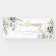 PixDezines Goma Azul Rústico Eucalyptus acentuado con floretas rosas de color verde y una mariposa. La caligrafía "Acogedora" está en oro falso para cualquier evento especial. Copyright © 2010-2023, PixDezines™. Todos Los Derechos Reservados.