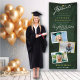 Pizarra Verde Oscuro Retro y Letra Script Estilosa, Felicitaciones al Graduado, Banner de Fiesta de Graduación con Collage de Tres Fotos.
