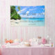 Banner tropical de bodas en la playa. Seleccione el botón "disfrazar" para cambiar el estilo de letra, color y tamaño.